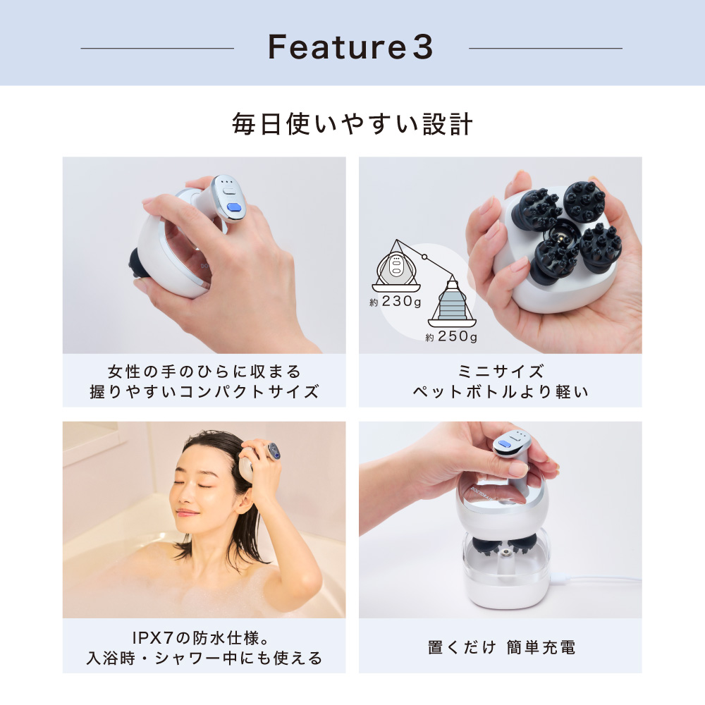 | 付属品 | スタンダードアタッチメント×4(本体に取り付け済)、ソフトアタッチメント×4、ニードルアタッチメント×4、充電台、USBコード(TYPE-C(AtoC))、取扱説明書(保証書別紙) |